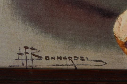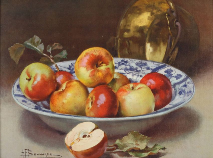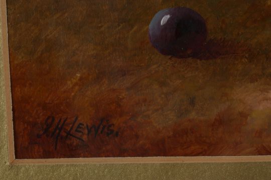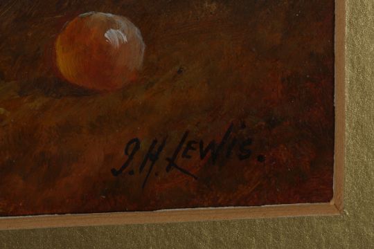 J. H. Lewis A pair of still life scenes of fruit, oil, signed, together with an oleograph still life of fruit. (3) each 17 x 24 cm.Condition:
