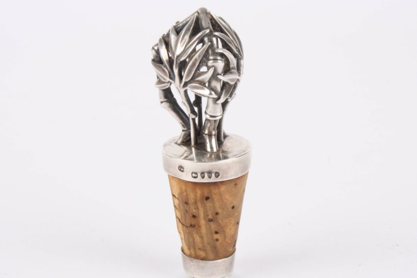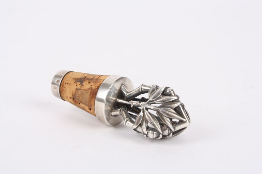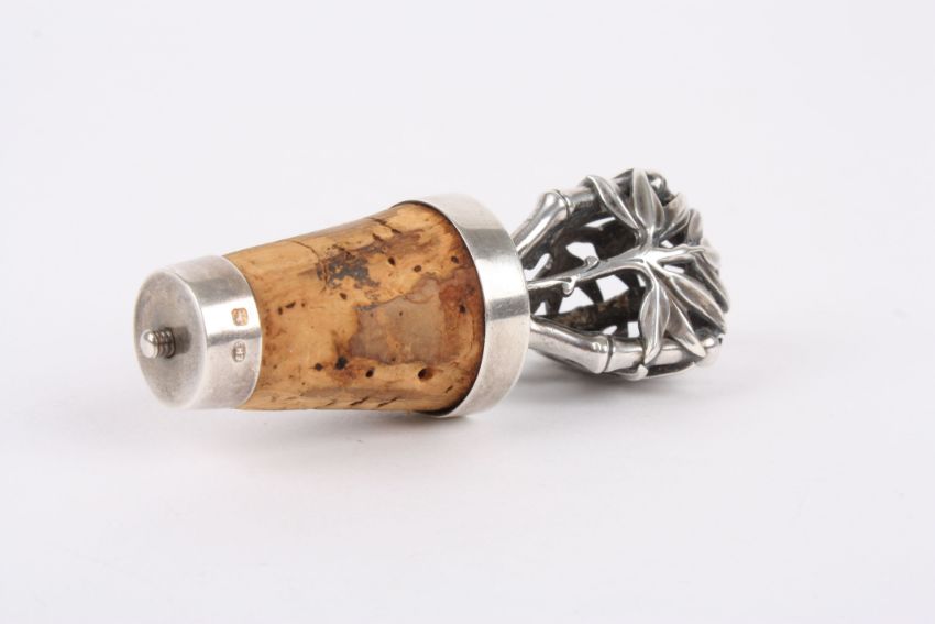 A Victorian silver Japanese style bottle stopper hallmarked London 1882, decorated with bamboo shoots and leaves, makers mark: Edward H Stockwell. 8.5 cm long.Condition: Excellent condition.
