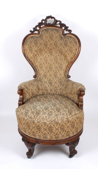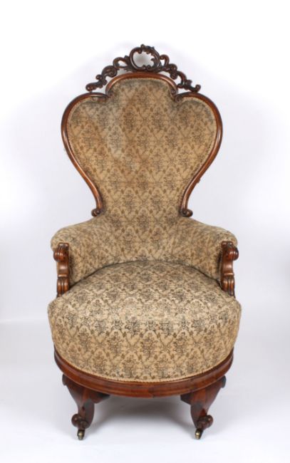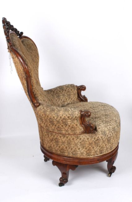 A large pair of Victorian rosewood revolving armchairs with finely carved show wood frames, revolving bases and supported on carved legs. Condition: