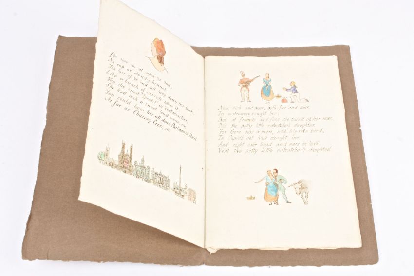 'The Rat Catcher's Daughter" an amusing hand penned booklet version of the ballad, illustrated with watercolour sketches on hand made paper 26 x 16.5 cms.Condition: overall goo