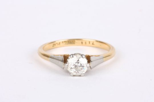 A single stone diamond set solitaire ringin 18ct gold and platinum mount Approx. 0.75ct. Size LCondition: Overall good