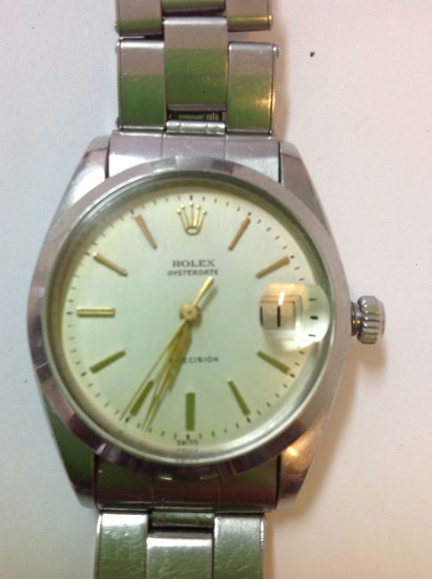 A Rolex stainless steel Oysterdate Precision wrist watchthe dial with gilt batons and hands with date aperture, bracelet numbered 7205 and marked Rolex, Condition: Condition is good with apparent wear to the case and bracelet, not tested