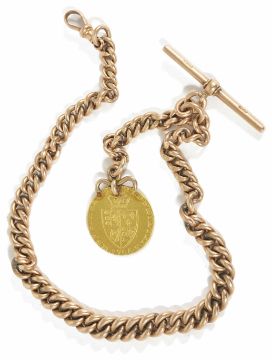 A 9ct gold Albert chainwith attached Georgian sovereign total weight 61g, length of chain 35cmCondition: