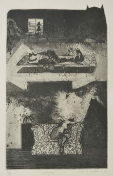 John A McPake two abstract prints, Sun Dreams and Guardians. Signed. Framed. Condition: Good condition. Artist’s Resale Right (ARR) royalties of 4% apply to this item if the sale price reaches or exceeds the sterling equivalent of €1,000