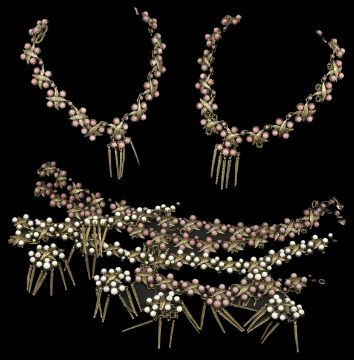 Christian Dior by Mitchel Maer 1954-1957A collection of vintage Dior necklaces, bracelets and brooches of the same design by Mitchel Maer comprising of two matching pink glass set tassel necklaces and the bracelets en suite, a further three similar pink necklaces, together with ten white glass bracelets of the same design and five en-suite white brooches There are some loose matching beads together with this lot (22) drop of earring 6 cm, length of bracelet 17.5 cm, fringe drop of necklace 5 cm, overall necklace drop length approximately 15 cmCondition: All labels have been removed. Some loose beads and some beads missingThis collection of Christian Dior jewellery was purchased by the current vendor's father-in-law as part of Mitchel Maer's liquidated stock sold at auction following his bankruptcy in 1957. Christian Dior insisted that the Dior name plaques were removed from each item of jewellery prior to the sale as Maer no longer held the Dior license for jewellery production in the U.K.