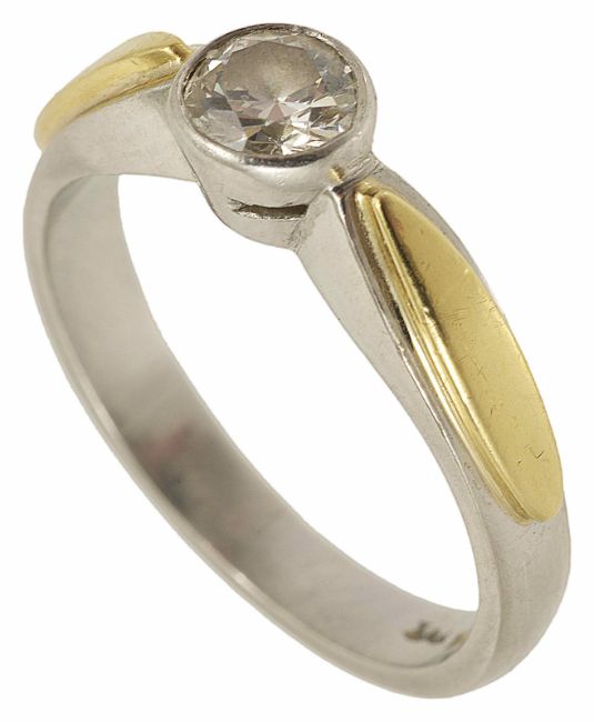 A single stone diamond set ringthe stone approx. 0.25 ct. collet set in yellow and white 18ct gold mount size LCondition: Overall good