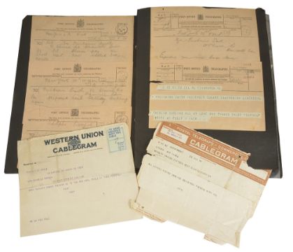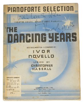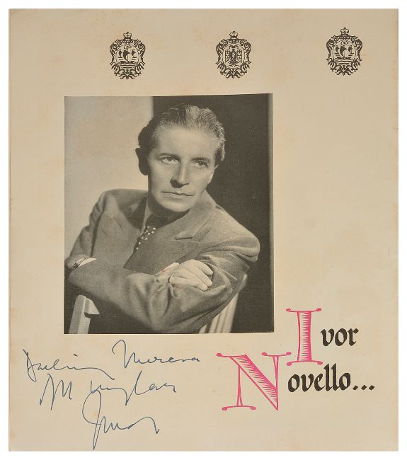 An interesting collection of Ivor Novello and Madame Clara Novello Davies memorabilia, dating from the 1920's to 1950'scomprising of telegraphs between Ivor and his mother Madame Clara Novelle Davies, whilst she was possibly touring New York with the Royal Welsh Ladies Choir, dated March 1924, with further telegraphs to Theresa Freebairn Smith, whilst she was a passenger on the Cunard Cameronian sailing from Liverpool to New York.Also comprising of an autographed programme of 'King's Rhapsody' musical, at the Palace Theatre, London on Thursday September 15th 1949. Autographs include Ivor Novello, Zena Dare, Phyllis Dare, Olive Gilbert, all dedicated to Theresa, (possibly Theresa Freebairn Smith).Further music sheets, programmes, photographs and postcards some autographed by Theresea Freebairn Smith and Ivor Novello.The Novello Davies Tonal Physicals Diploma of 7th April 1933 certificate for Miss Helen Freebairn Smith, with Tonal Physicians booklets, with further dedicated photographs to Helen.Ivor Novello, born David Ivor Davies on the 15th of January 1893 and died on the 6th of March 1951. A Welsh composer, actor, director and dramatist, most popular British entertainer of the first half of the 20th century. Madame Clara Novello Davies, born on the 7th of April 1861 and died on the 7th of February 1943. A Welsh singer, composer and conductor. Founded and conducted the Royal Welsh Ladies Choir. Condition: Condition is fair to good, with edges and damage to some of the music sheets, programmes and photographs. Advised to view in person.