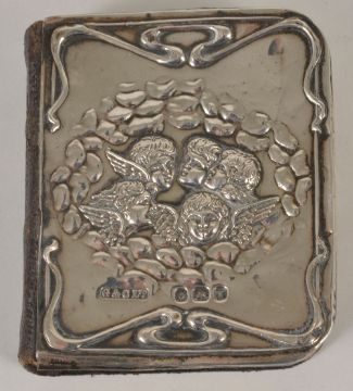 A selection of silver miniature frames and boxes etccomprising a pair of oval silver miniature frames, Birmingham 1898, a small heart shaped trinket box, London 1833, a silver mounted common prayer book, Birmingham 1901, a velvet and silver double miniature frame, London 1982, a silver heart shaped ring box, Birmingham 1901, a small silver heart shaped trinket box and a pair of lorgnettes, (8)weight of silver boxes: 1.1 ozt approx.Condition: One frame stand is broken, minor wear to the items, lorgnettes not marked and not tested.
