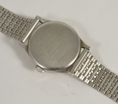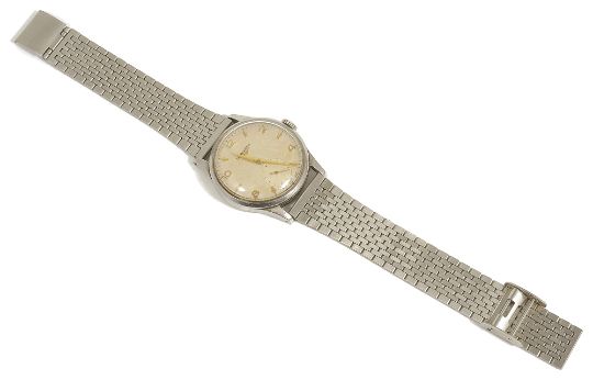 A Longines stainless steel gentleman's wristwatchwith arabic numeral and baton hours, subsidiary seconds dial, Longines logo on dial, bracelet strap, case diameter: 33 mmCondition: Fair, with minor scratches to case, plexi-glass and strap, dust on dial, mechanism NOT tested, running at time of cataloguing, crown does not have logo