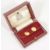 A pair of 18ct gold earrings bearing the Royal College of Surgeons emblem converted from a pair of cufflinks, in associated fitted Garrard & Co. Ltd. box approx. weight 5.2 gm., approx. size 15 x 12 mm. Condition: Overall good, screw action fittings