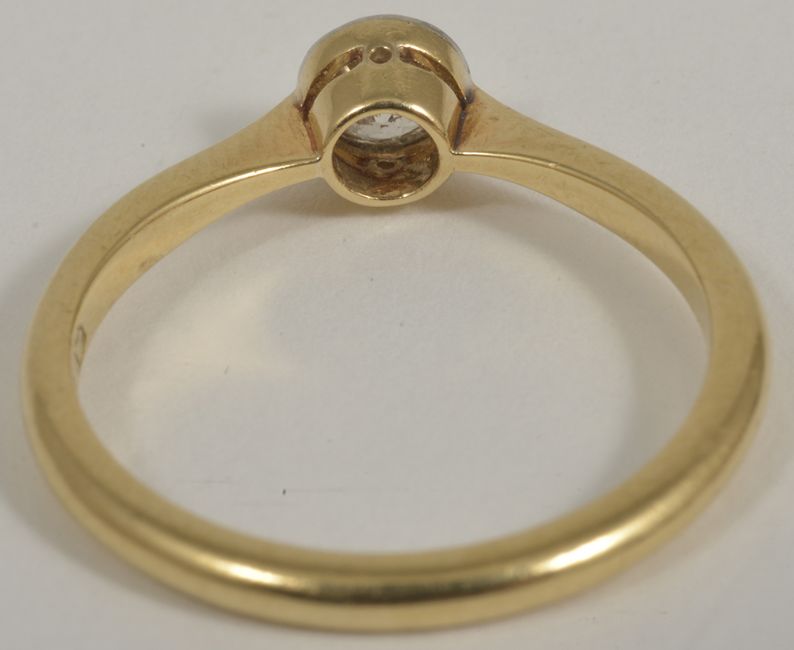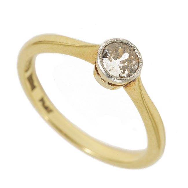 A single stone collet mounted diamond ring, circa 1930approximately 0.25ct mount marked for 18ct gold and platinumsize N/OCondition: Stone draws a very light cinnamon/pink, central inclusion easily visible x10