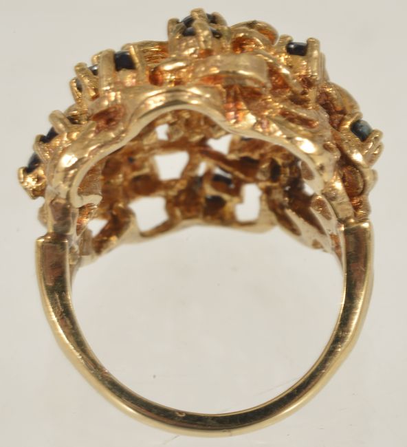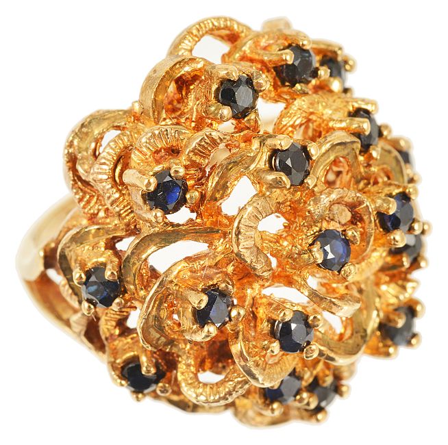 of random woven cluster swirl form and with textured finish and set overall with small sapphires