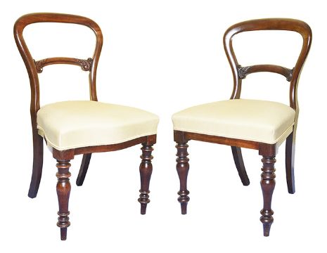 the curved mid-rails carved with acanthus details and upholstered over stuffed seats upon turned tapering front supports with splayed back supports, comprising four gentleman's chairs and six ladies chairs, (10)