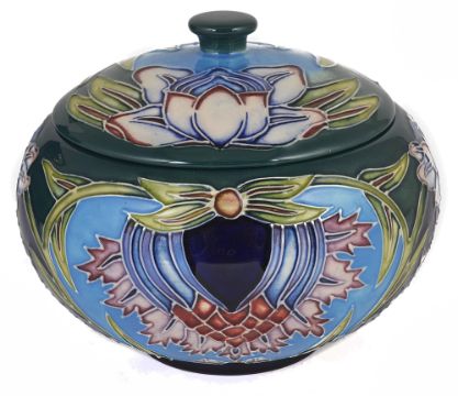 A pair of contemporary Moorcroft pottery 'Saadian' jars with cover by Shirley Hayes, design date 2001