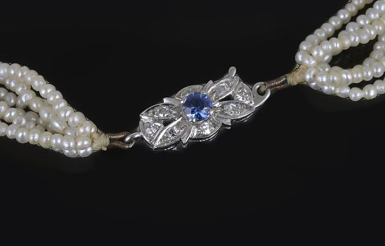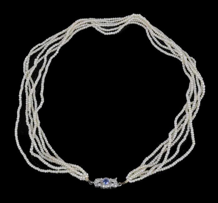 the rows of even length and having later sapphire and diamond 18ct gold white gold clasp
