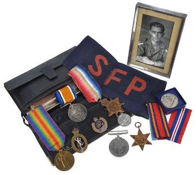 with a framed photograph of SPR J.H. Wheatley of further loose photographs, with his soldier's Service Pay Book and National Registration Identity Card and Inventory of Kit booklet and a SFP arm badge for Borough of Bexley Voluntary Fire Fighting Party for Joyce Williams, a/f, (qty)