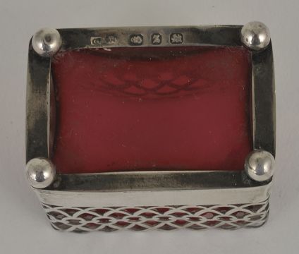 A Victorian pierced silver salt with pink glass liner, hallmarked Birmingham 1899
