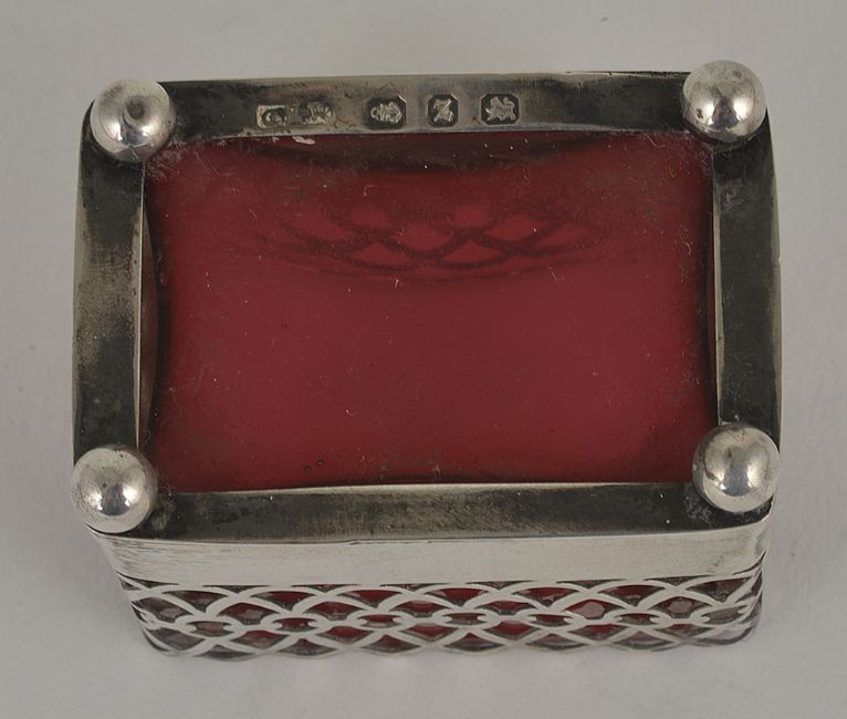 of rectangular form with a pierced basket weave band above a plain silver band upon four ball supports, by G.E. Walton & Co. Ltd