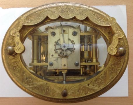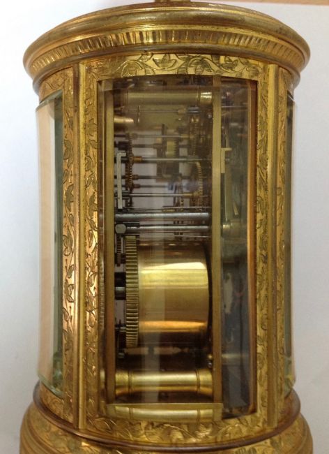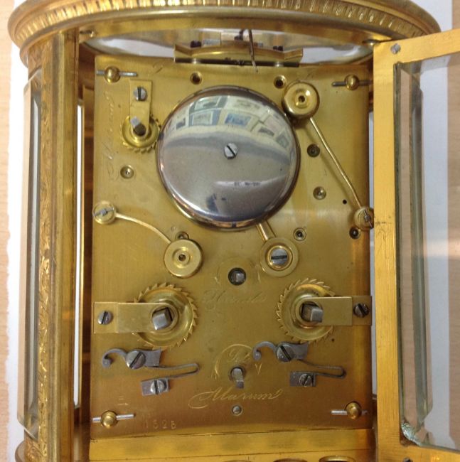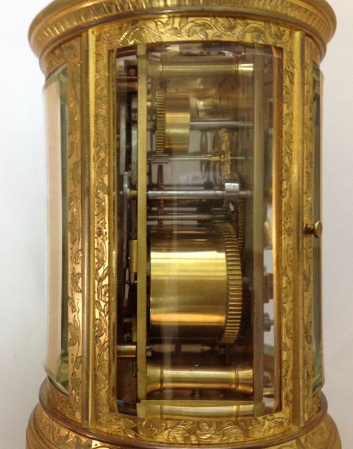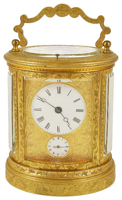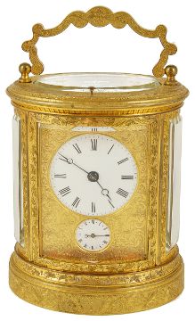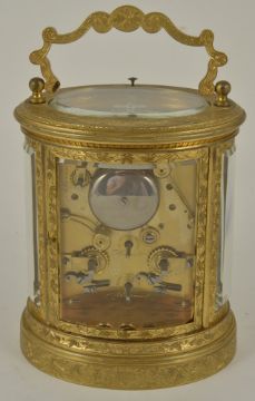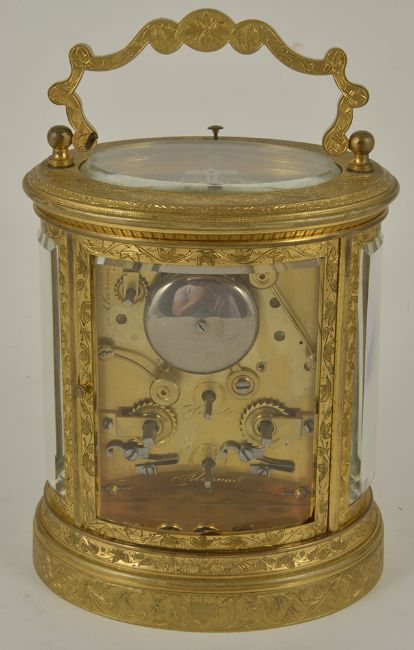 An oval four glass gilt metal repeater carriage clock, late 19th century