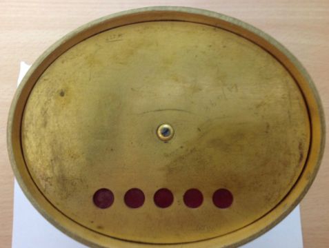 Condition: Good with wear to gilt metal body, the glass on the back door is chipped at the lower edge and lower corner, mechanism NOT tested
