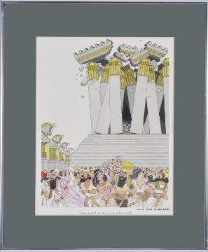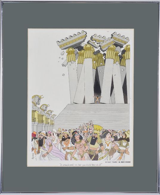 cartoon artwork for Playboy Jun. 1977 pg. 145, drawn: Apr. 1976, pen and ink with watercolour, on artists board, signed lower left, caption below, Copyright Playboy All Rights Reserved stamp & Playboy Publications Inc. Reproduction Prohibited Without Permission bottom margin & verso, mounted in metal frame