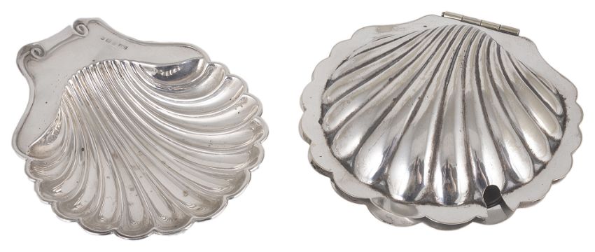 An Edwardian silver scallop shell butter dish, hallmarked Birmingham 1902