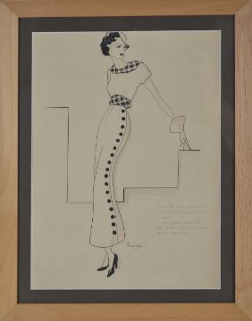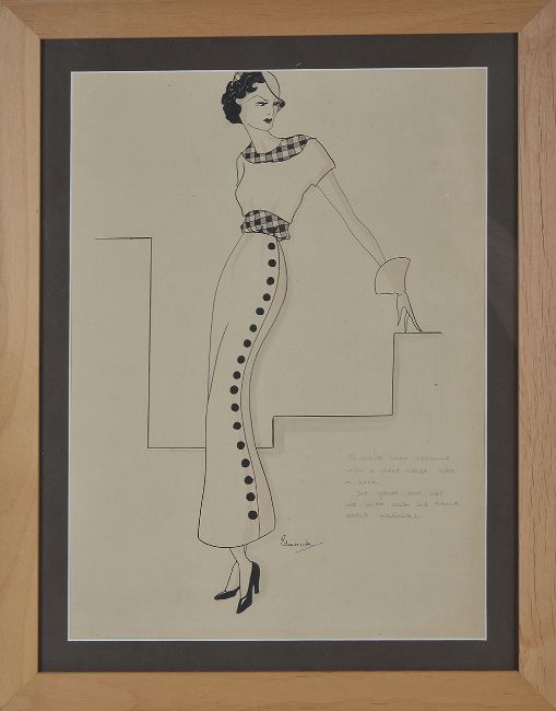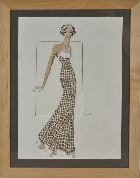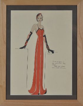 comprising thirty-six individual drawings of evening gowns, beach, cruise and day wear, some signed in pencil Joan Edwards or in ink Edwards and dated 1933, ink with watercolour on artists paper, a/f, (3 framed and 33 loose)