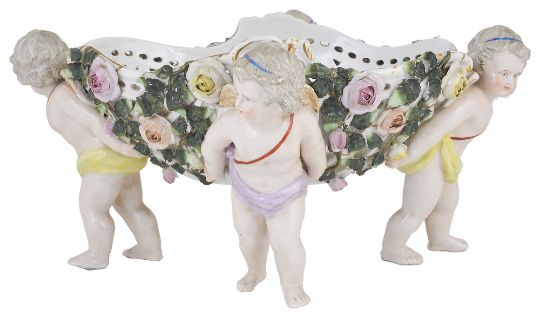 A Sitzendorf porcelain cherub basket, early 20th century