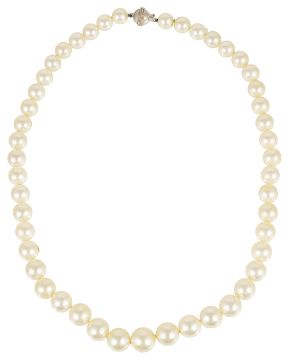 A Continental single row large cultured pearl necklace with diamond set clasp