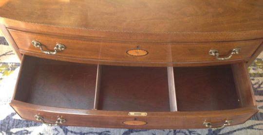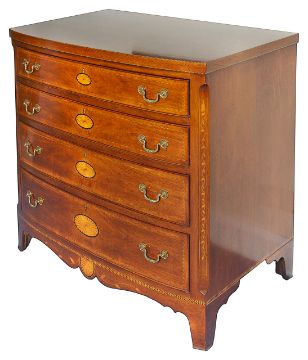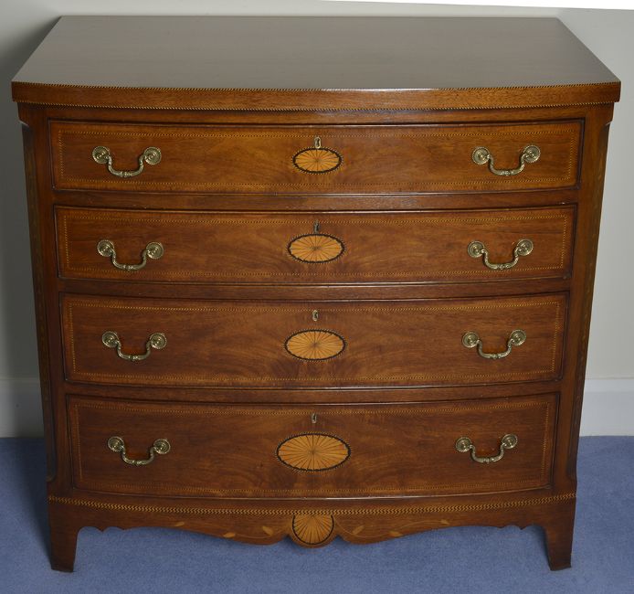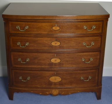 A mahogany and string inlaid bowfront chest of drawers, 20th century