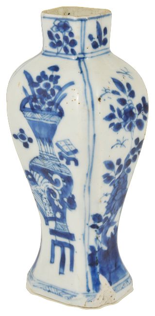 Condition: Chip to corner of base, faint crack from base to half way up the body of the vase