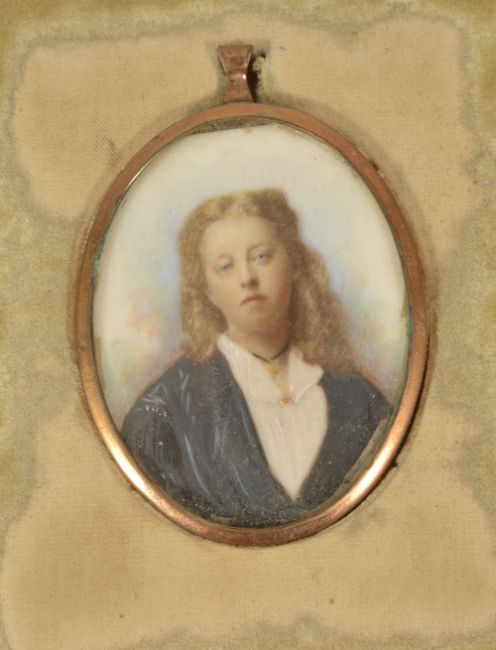 Condition: Condition is good, appropriate with age, gilt metal frames are worn and have dents and tarnishing, all three have paper lining the back of the thinly sliced ivory, each are slightly off oval shape,, each in a leather cover case, which are fairly worn throughout.