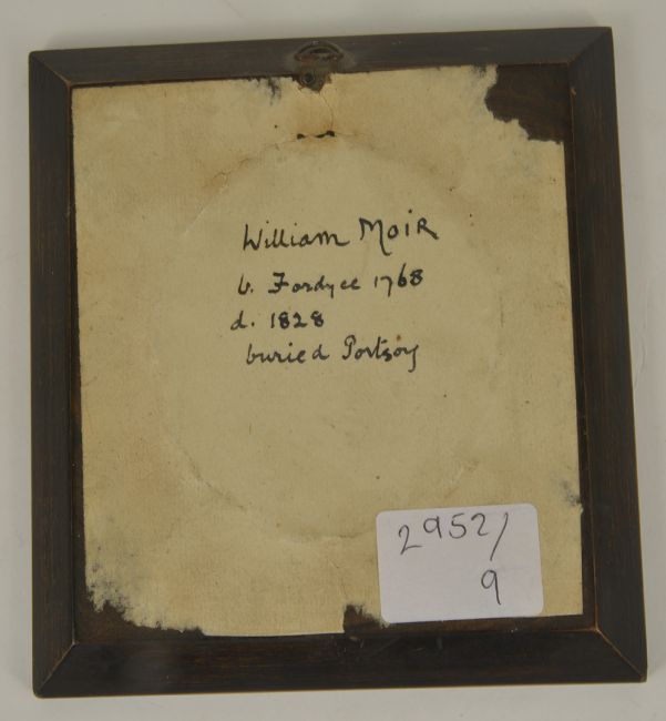 the figure depicted wearing a red coat with epaulettes, the reverse with ink description possibly of the sitter(?) William Moir, contained within a rectangular frame