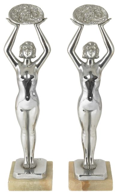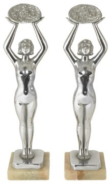 A pair of Art Deco Limousin chrome plated spelter nude figures,