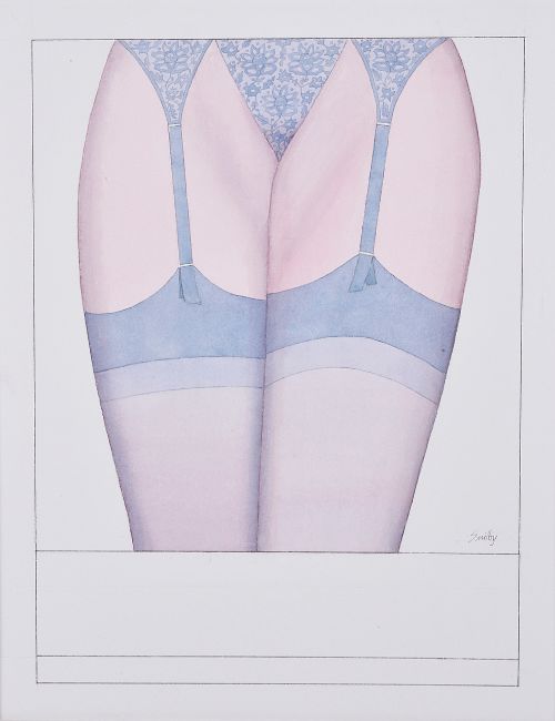 circa 1996, pen and ink with watercolour, on Arches artists paper, signed lower right in ink, 9610 "Blue Mist" (Lay Misty for Me) - Copyright 1996 Francis Wilford-Smith - No reproduction without permission inscribed in ink on verso, with mount
