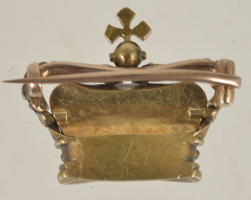 A good quality diamond and gem set enamel crown brooch