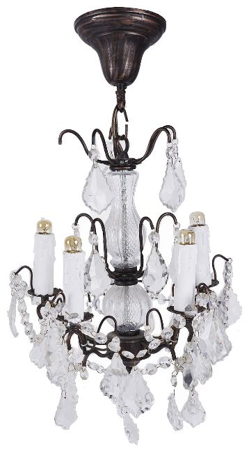 A 19th century style three tier chandelier the bottom tier with five candle lights, with glass swags and droplets, with central ceiling support height 70cm