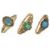 size S, turquoise three stone size L/M, turquoise cluster, approx. total weight 6gms