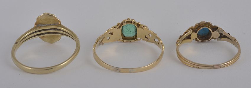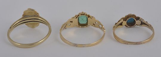 together with a Victorian turquoise set ring and another later turquoise set ring, both test for gold (3)