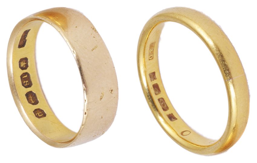 Condition: The wider has overall even wear commensurate with age, the narrower is slightly misshapen and also has wear
