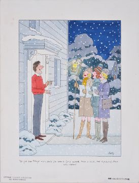 cartoon artwork for Playboy Dec. 1996 pg. 165, drawn: Aug. 1996, pen and ink with watercolour, on Daler board, signed lower right, caption below, Copyright Playboy All Rights Reserved stamp & Playboy Publications Inc. Reproduction Prohibited Without Permission lower margin & verso, Smilby yellow dot verso, with dust cover sheet, together with the artist's paper rough workup for this artwork with the artists notes in the lower, signed lower right and 'Ok Color - H' on lower margin in crayon possibly by Hugh Hefner, (2)