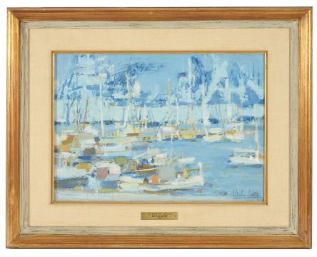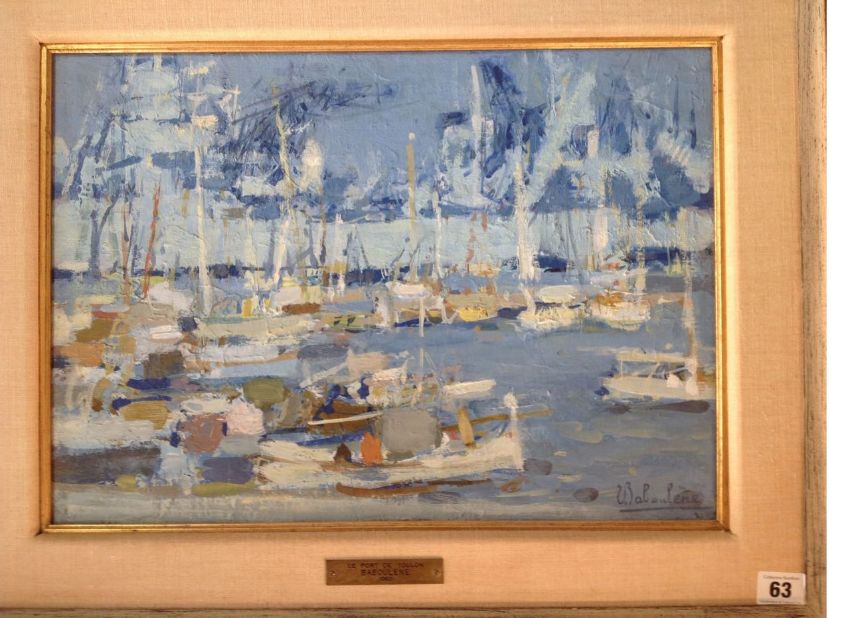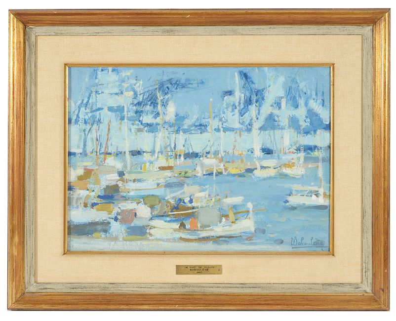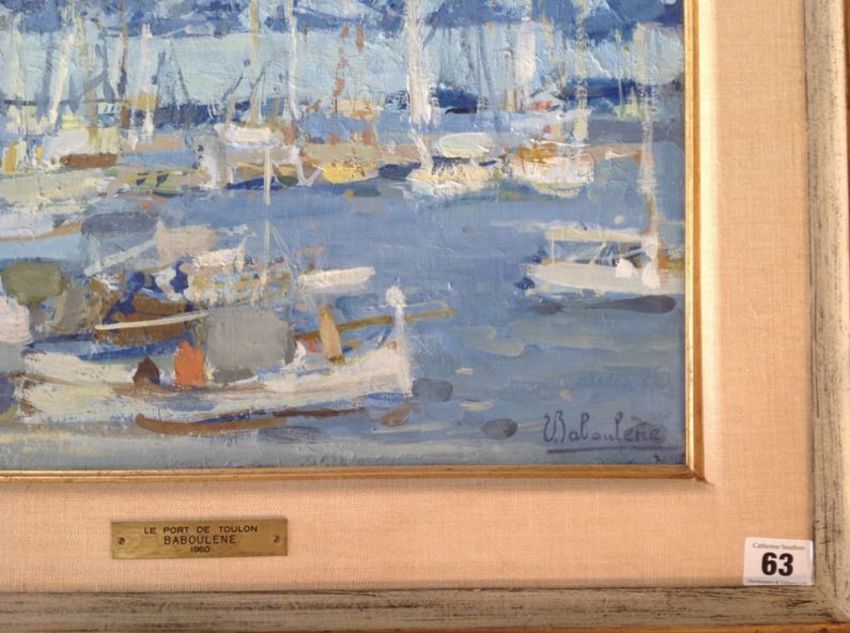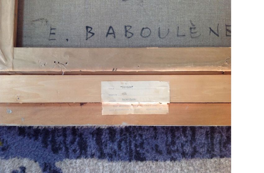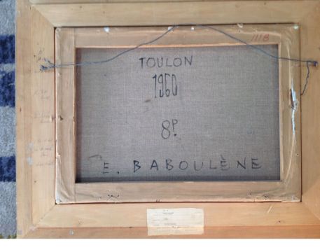 'Le Port De Toulon' oil on canvas, signed lower right, framed, brass plaque engraved 'Le Port De Toulon Baboulene 1960', 'Toulon 1960 8p E. Babolene' on canvas verso, paper label from The Waddington Galleries Inc.