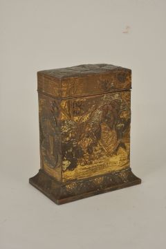 Condition: Overall worn has perhaps been cleaning with an abrasive cloth. With small dent to lid
