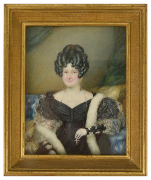 A 19th century portrait on ivory of a lady with curled hair