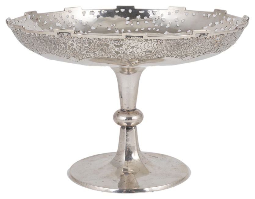 A Chinese export Wang Hing & Co. silver pedestal tazza, late 19th/early 20th century