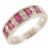 set with four rectangular cut rubies, each spaced with a pair of small brilliant cut diamonds, mount marked for platinum