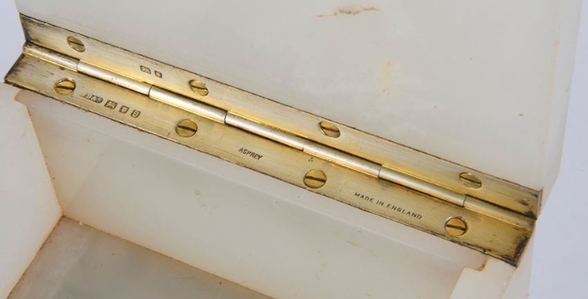 A George VI Asprey alabaster table cigarette box, hallmarked London 1937