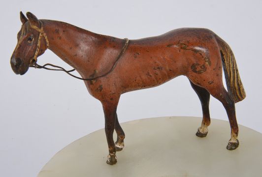 Condition: Fair, with chips to the edges of the agate, no marks on bronze horse