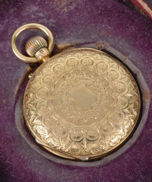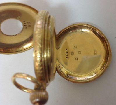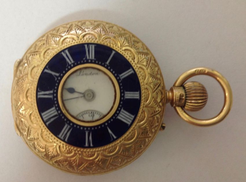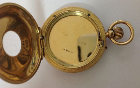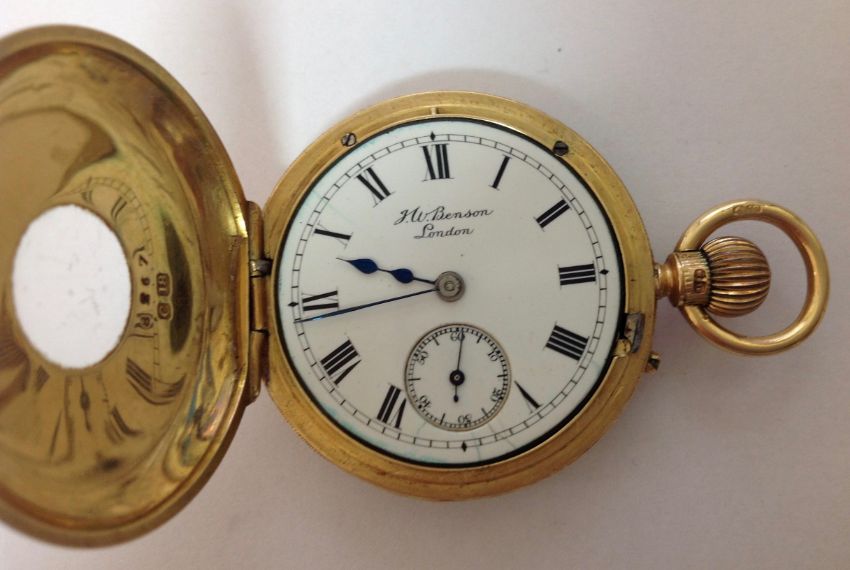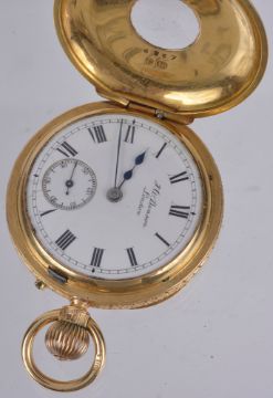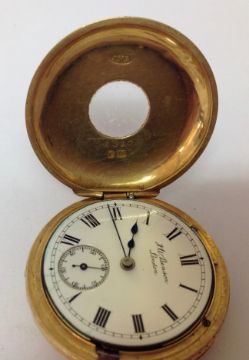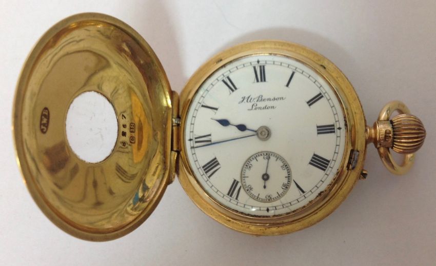 A J.W. Benson 18ct gold ladies half hunter pocket watch