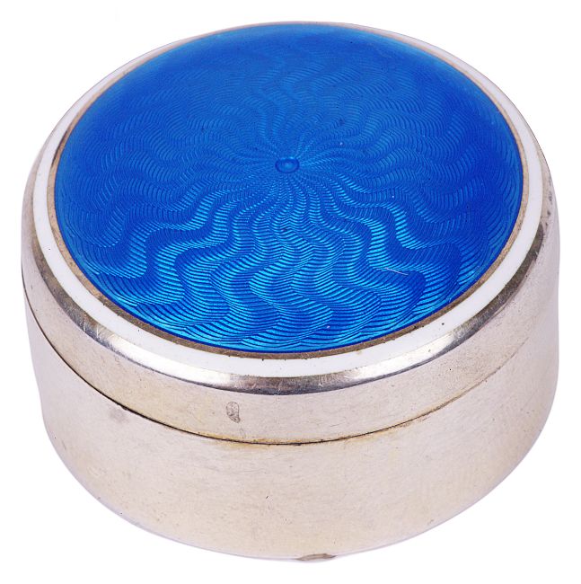 the screw top circular box stamped on the inside 935 with initials TF, with gilt interior
